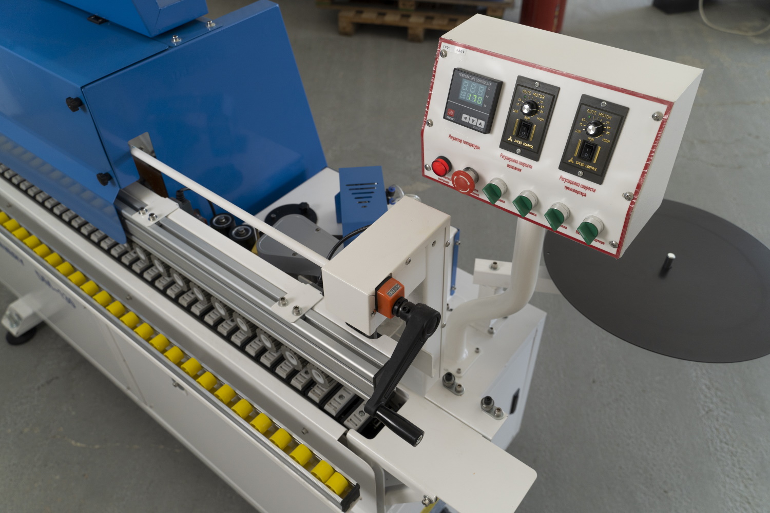 Предназначен для облицовывания прямолинейных мебельных щитов и заготовок натуральным полосовым и синтетическим рулонным материалом. А также для снятия свесов (фрезерования) уже приклеенного кромочного материала одновременно как с нижней, так и с верхней части детали.