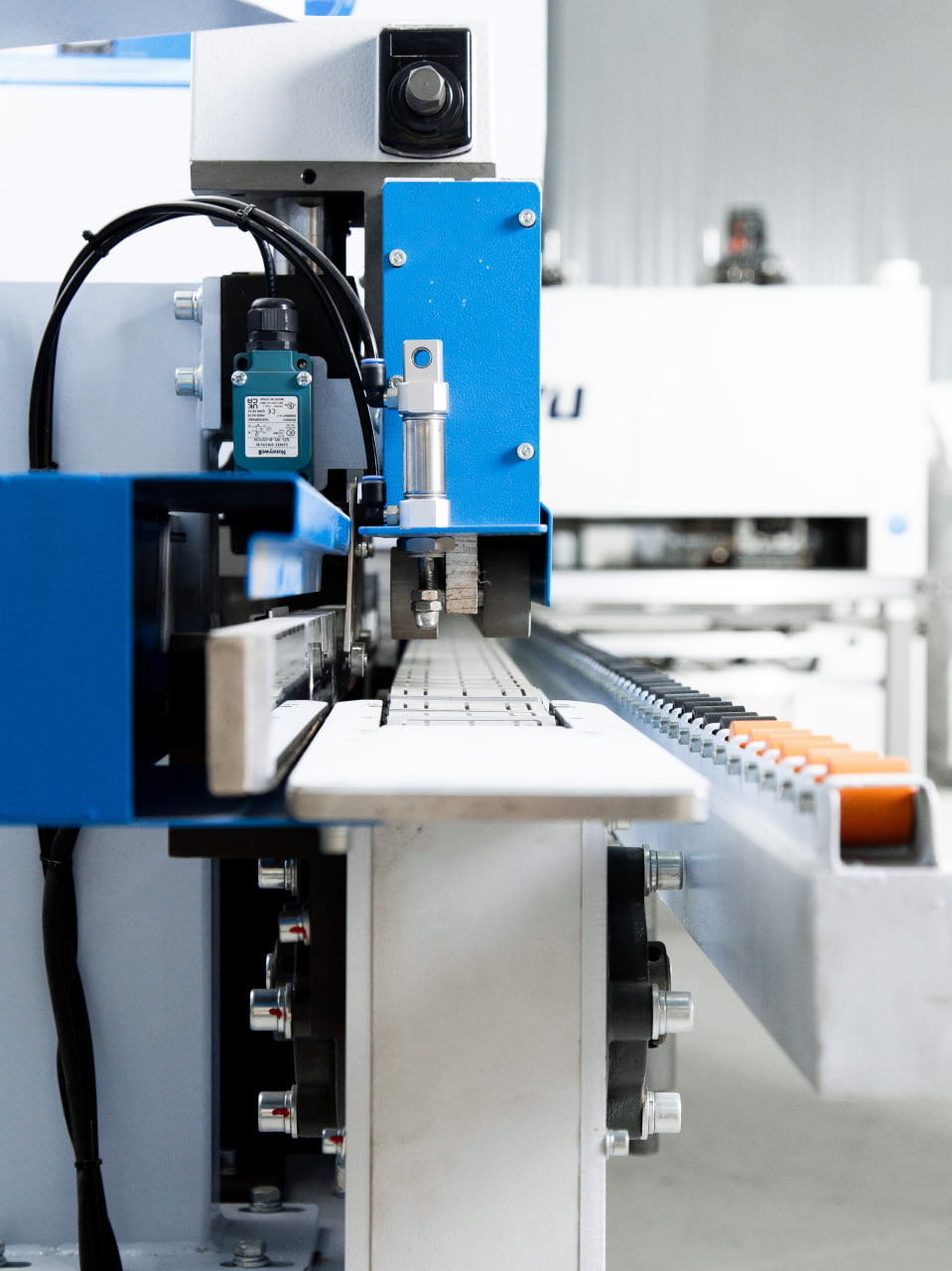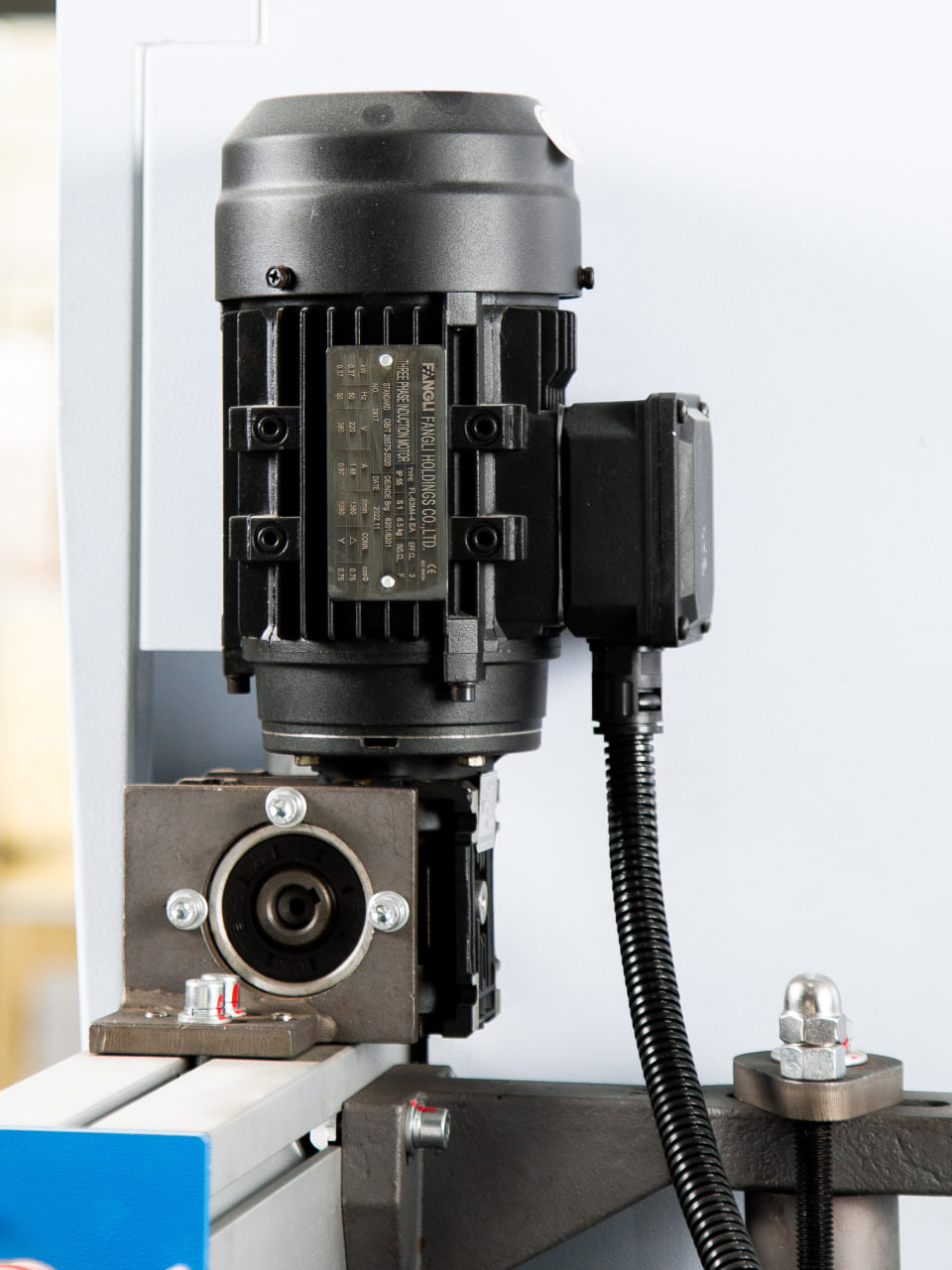 Надежный редуктор приводится во вращение эл. двигателем 2,2 кВт и позволяет развивать скорость до 23 м/мин. Система направляющих позволяет точно и без вибраций перемещать детали относительно узлов обработки.