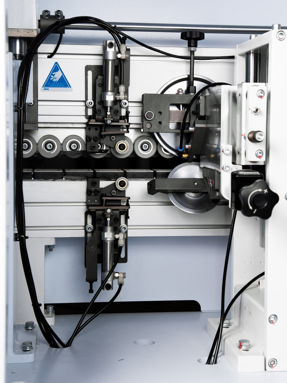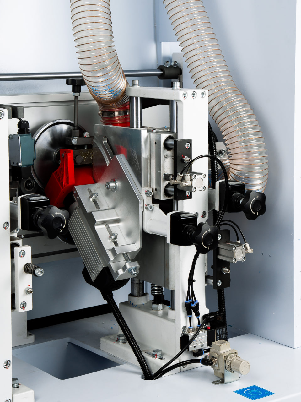 Предназначен для удаления остатков клея с плоскости детали, обеспечивая безупречную обработку в зоне клеевого шва. Высокоточные копиры, находящиеся на минимальном расстоянии от края заготовки, позволяют агрегату повторять возможные неровности плитного материала.