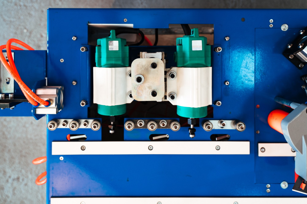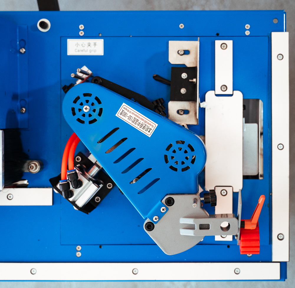 Работает от концевого выключателя для прямолинейных заготовок и от педали для криволинейных.