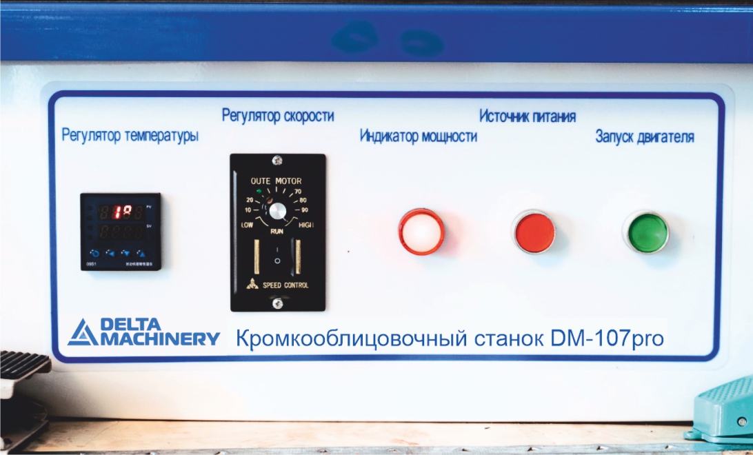 Кромкооблицовочный станок DM 107 Pro — это полуавтоматическое оборудование с ручной подачей, предназначенное для облицовки торцов мебельных заготовок.