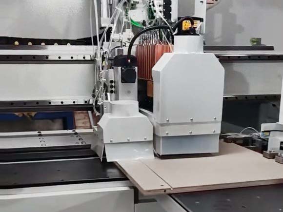 Использование промышленного управляющего компьютера, идеально сочетающего в себе различные программы для оптимизации карт сверления и фрезеровки, возможность работы со сканером штрихкода, в разы ускоряет производительность технологического процесса. Выполнение любых карт присадки с шести сторон за один проход детали, фрезерование прямых и криволинейных пазов с помощью фрезерного узла.