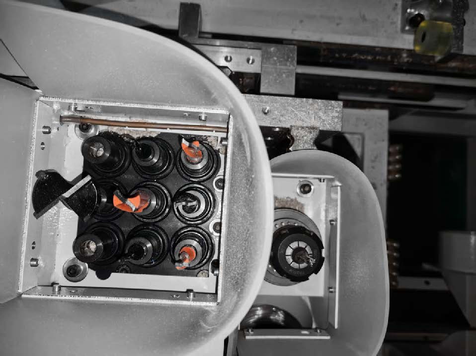 Две сверлильных группы: одна верх-няя и одна нижняя + 2 фрезерных узла (один сверху и один снизу).